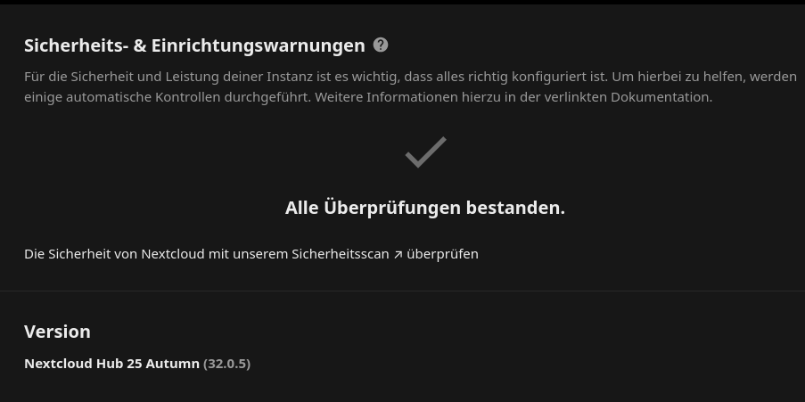 Sobald die Container laufen (docker compose up -d), wird Nextcloud bemerken, dass die Datenbank von einem anderen Server kommt.